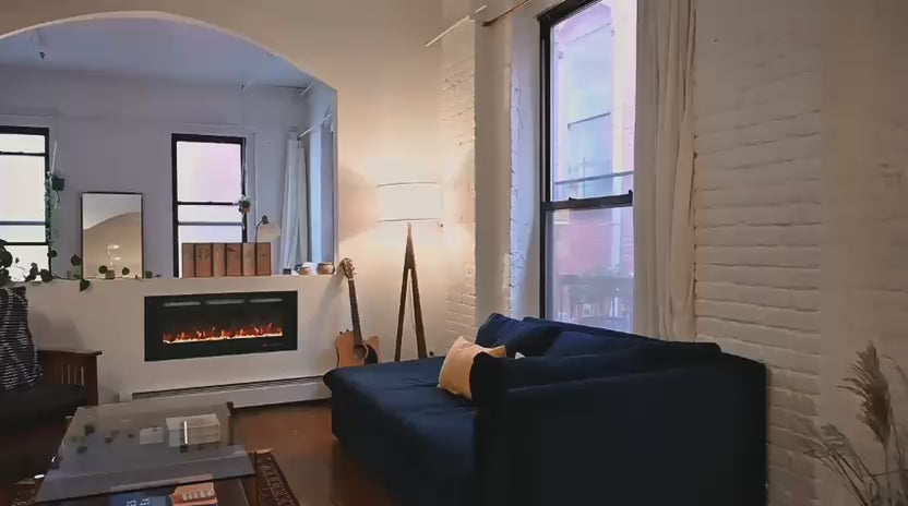 The 1–9 hour timer function gives you precise control over operating times, while the sleek glass front ensures the fireplace maintains its minimalist, uncluttered look even as it offers expanded functionality. And because it’s electric, there’s no venting, no messy cleanup, and no complicated installation — just instant warmth and ambiance at the touch of a button.